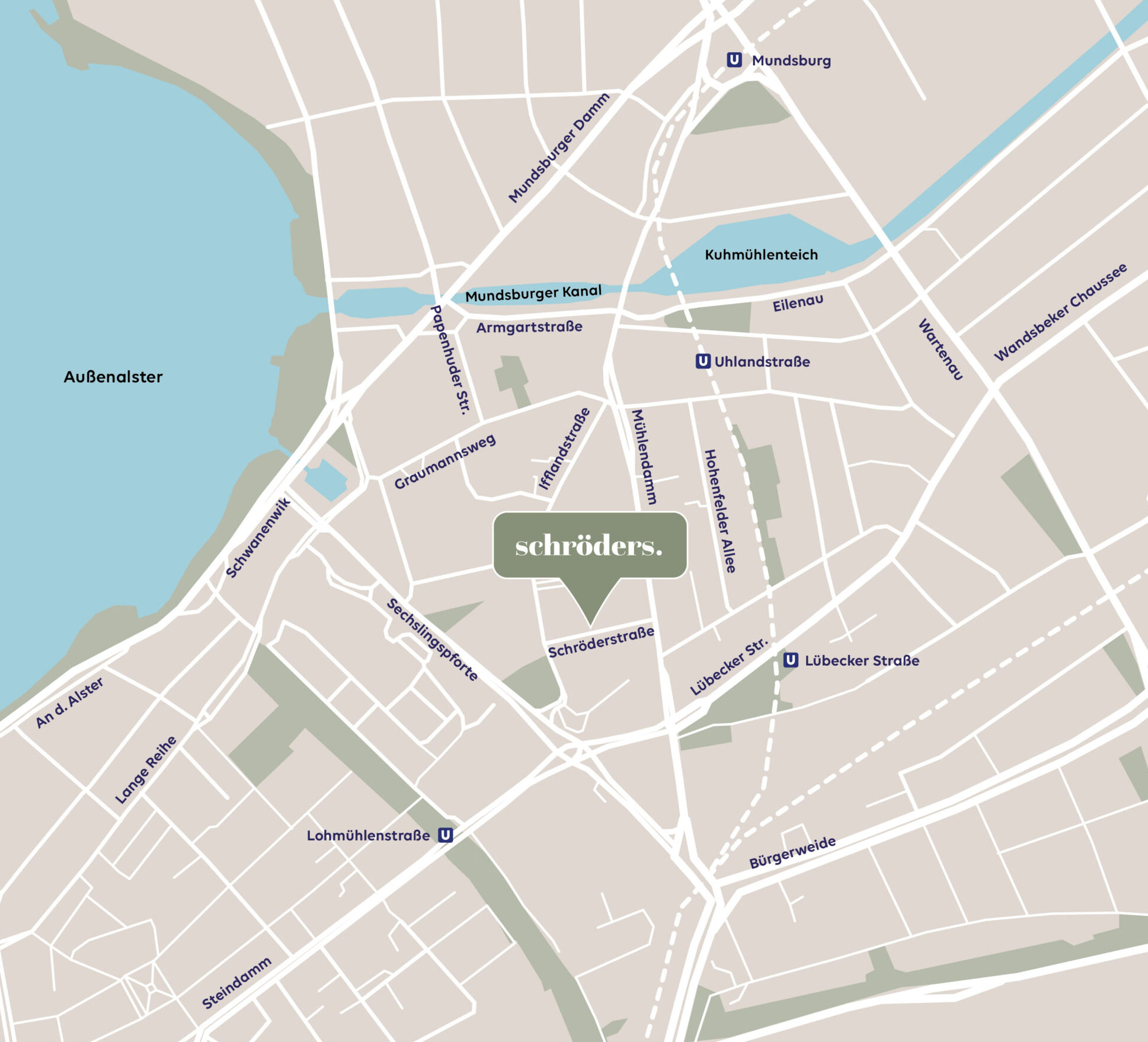Die Alster, der Hauptbahnhof und das quirlige St. Georg liegen in Laufweite – und machen das schröders. zu einem Ort, der urbanes Leben mit einem hohen Maß an Individualität verbindet.